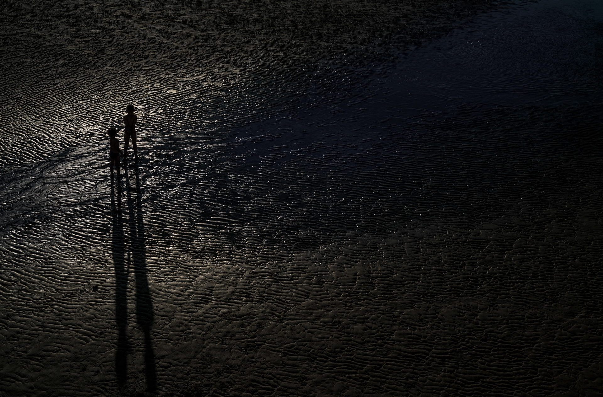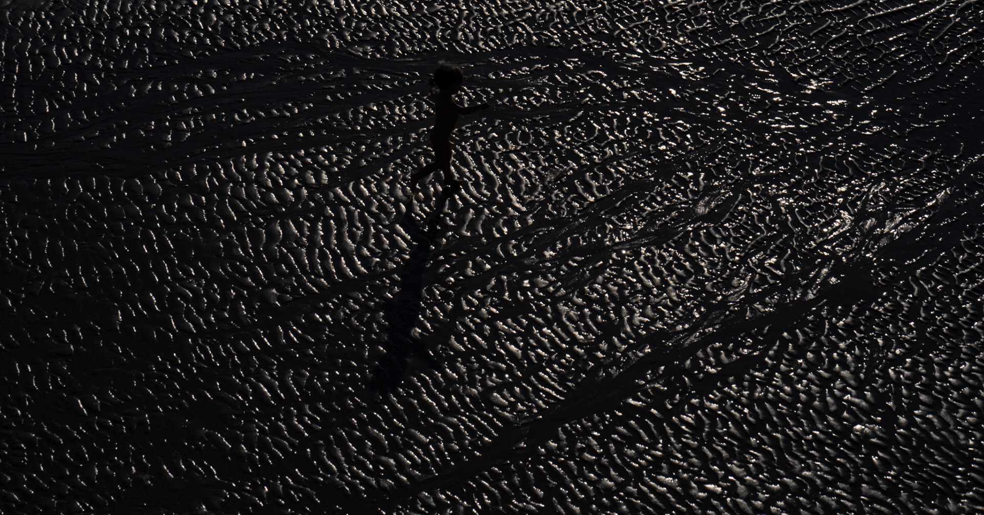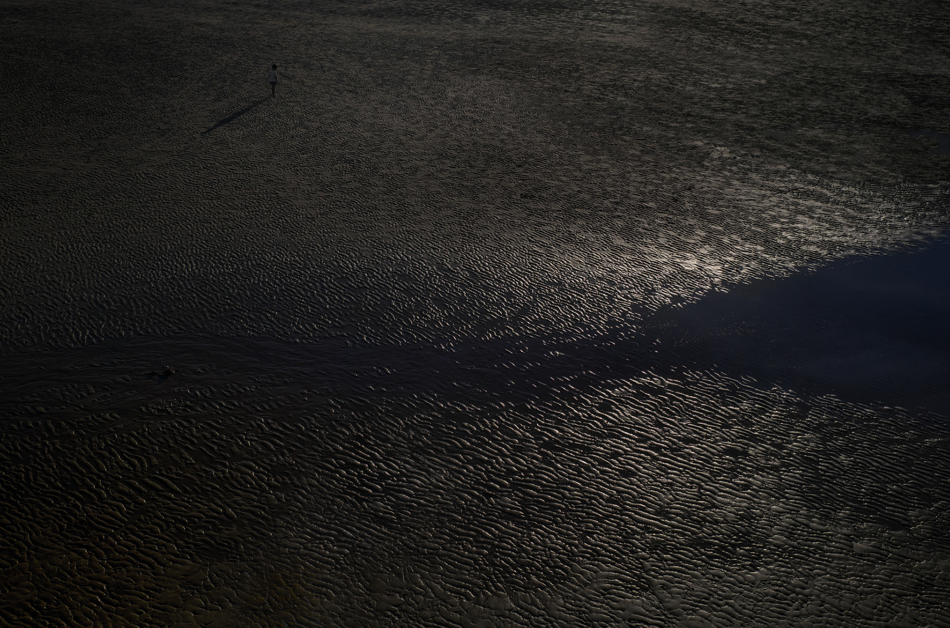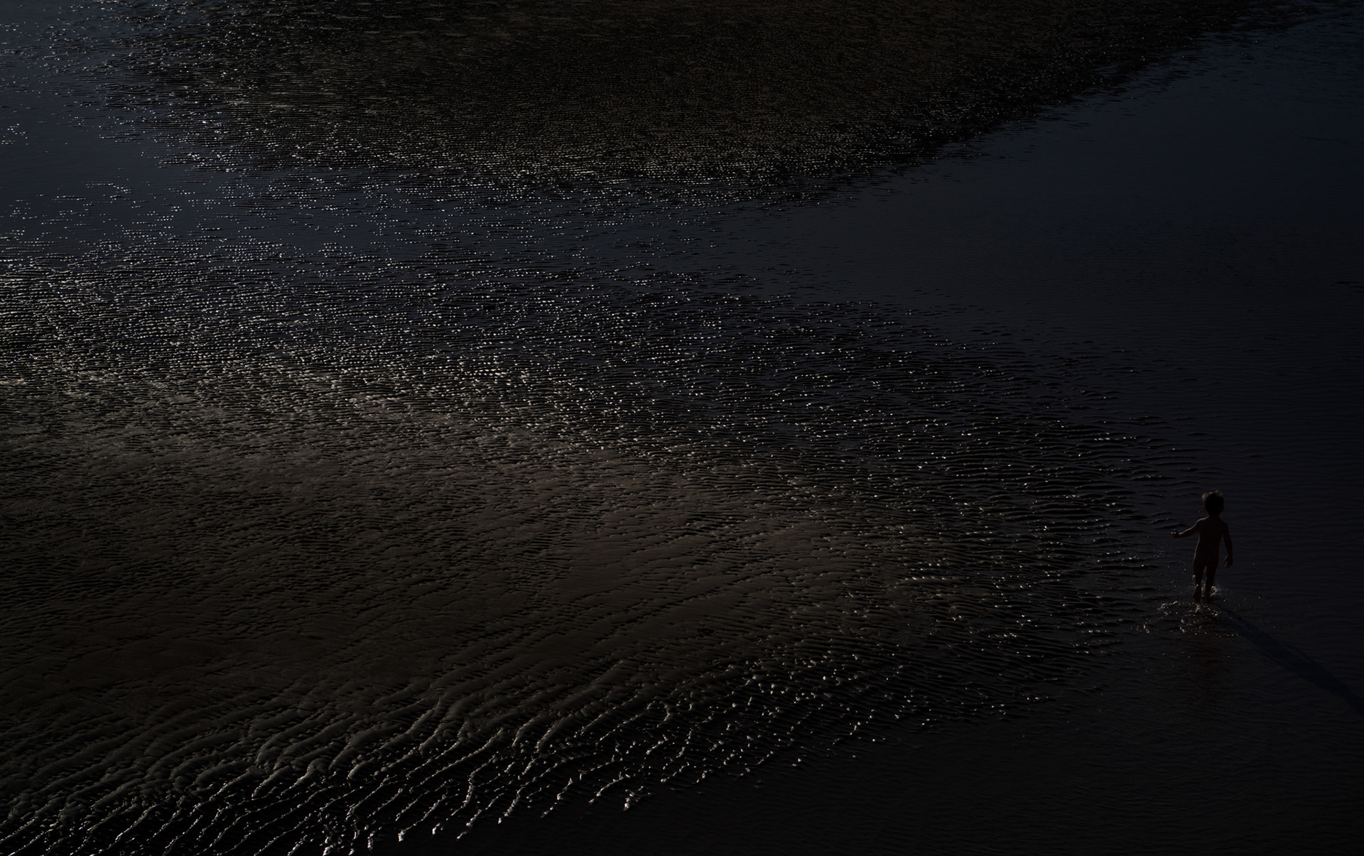 During a short trip to San Sebastián in 2016, Aristotle Roufanis was fascinated by how the locals would every day run to the sea after work and hastily throw their clothes off in order to bask in the sun. The popular resort town on Spain’s northern coast—not far from the French border—is famous for its spectacular bay lined with wide sandy beaches; but in Insolation, the photographer seeks to capture an impression quite different from the stereotypical image of people relaxing on a perfect beach. Golden sands and blue waters are presented in dark tones, and the carefree swimmers are rendered as dark figures that hardly betray any sign of gender, clothing or identity.