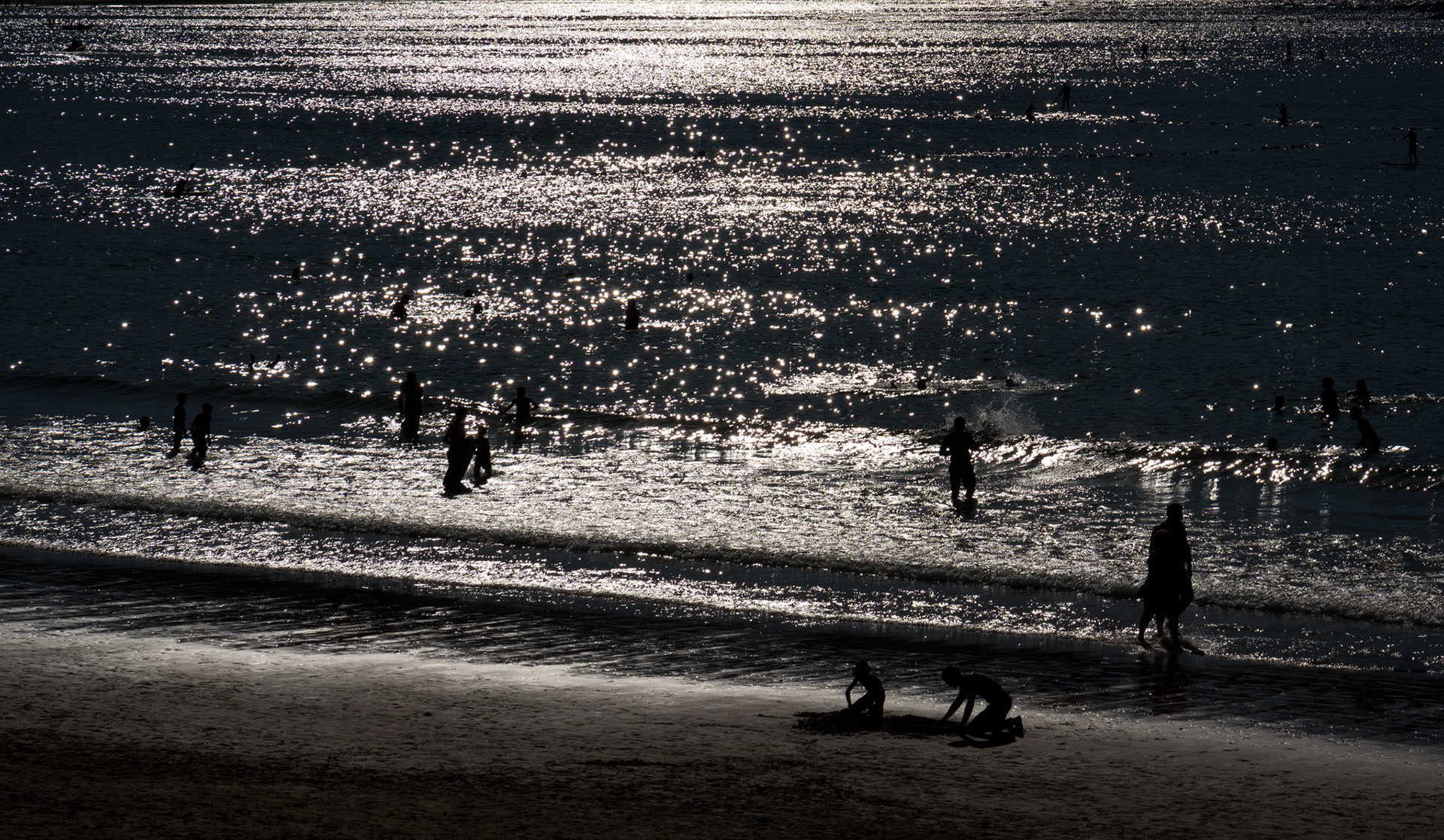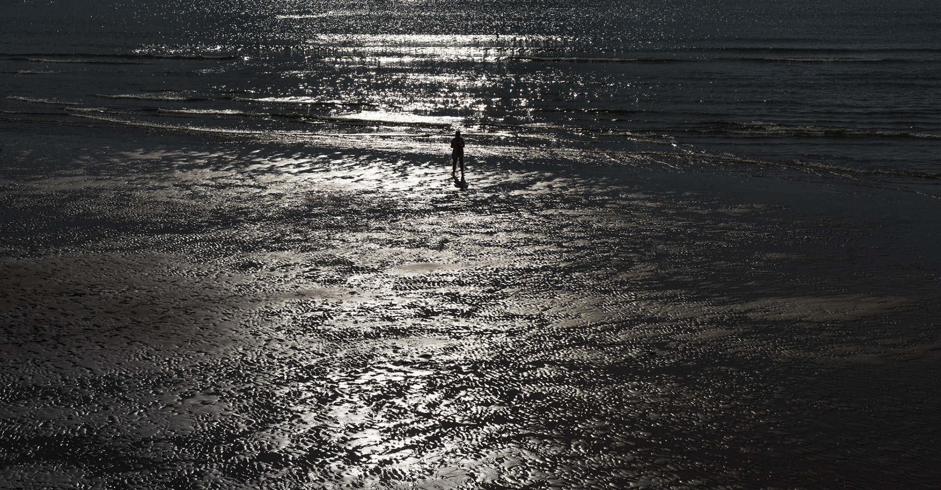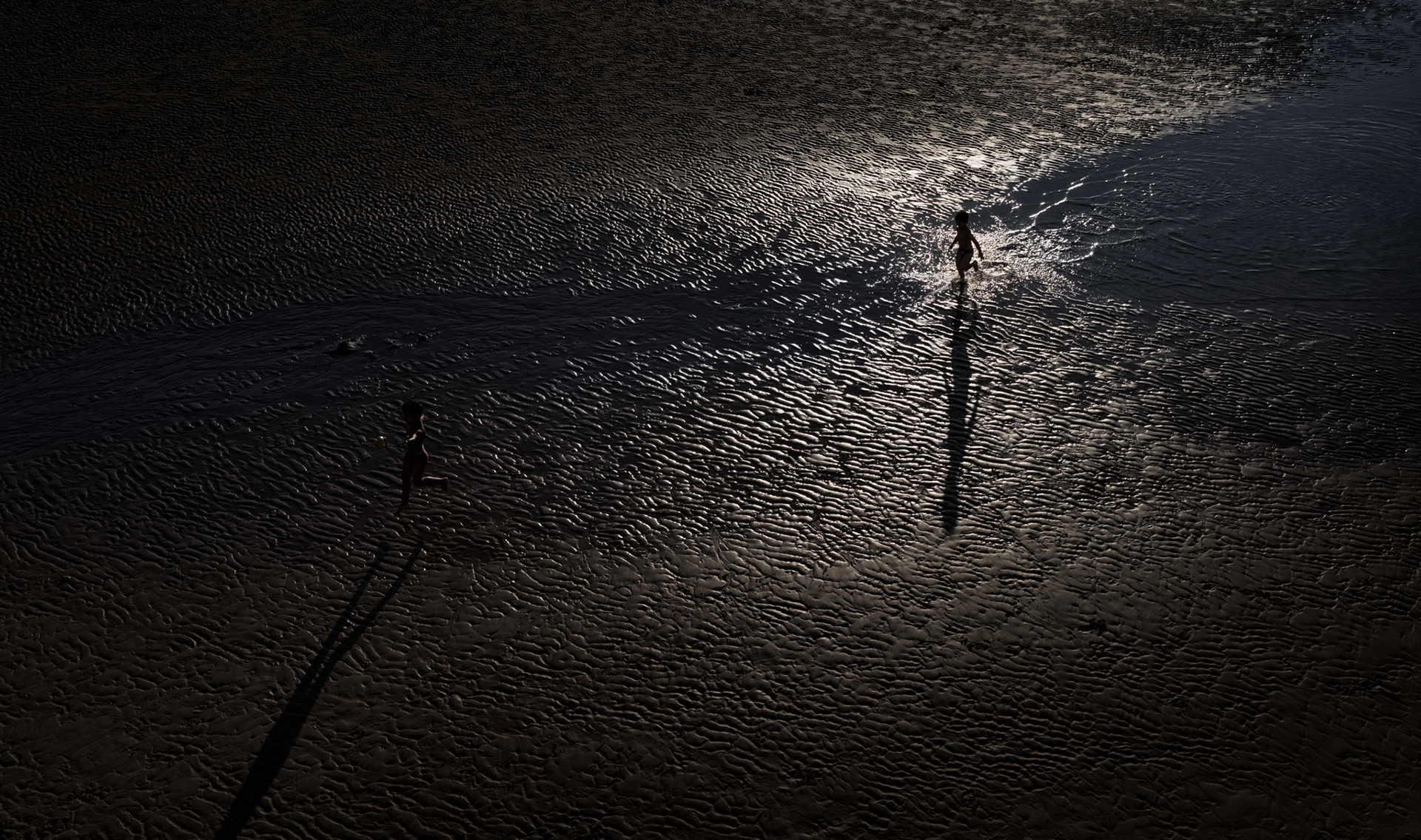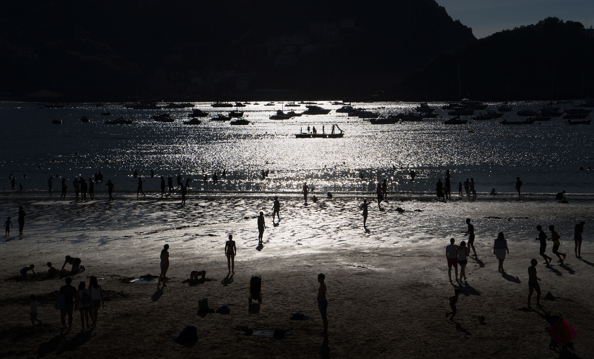 During a short trip to San Sebastián in 2016, Aristotle Roufanis was fascinated by how the locals would every day run to the sea after work and hastily throw their clothes off in order to bask in the sun. The popular resort town on Spain’s northern coast—not far from the French border—is famous for its spectacular bay lined with wide sandy beaches; but in Insolation, the photographer seeks to capture an impression quite different from the stereotypical image of people relaxing on a perfect beach. Golden sands and blue waters are presented in dark tones, and the carefree swimmers are rendered as dark figures that hardly betray any sign of gender, clothing or identity.